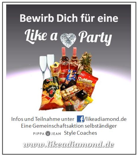 Kein Problem! Bewirb Dich über die Gewinnspiel-App auf unserer Facebookseite www.facebook.com/likeadiamond.de bei unserer neusten Aktion und schreib uns in einem Kommentar Deine Stadt oder Region und warum genau DU eine rundum sorglos Style Party verdient hast.